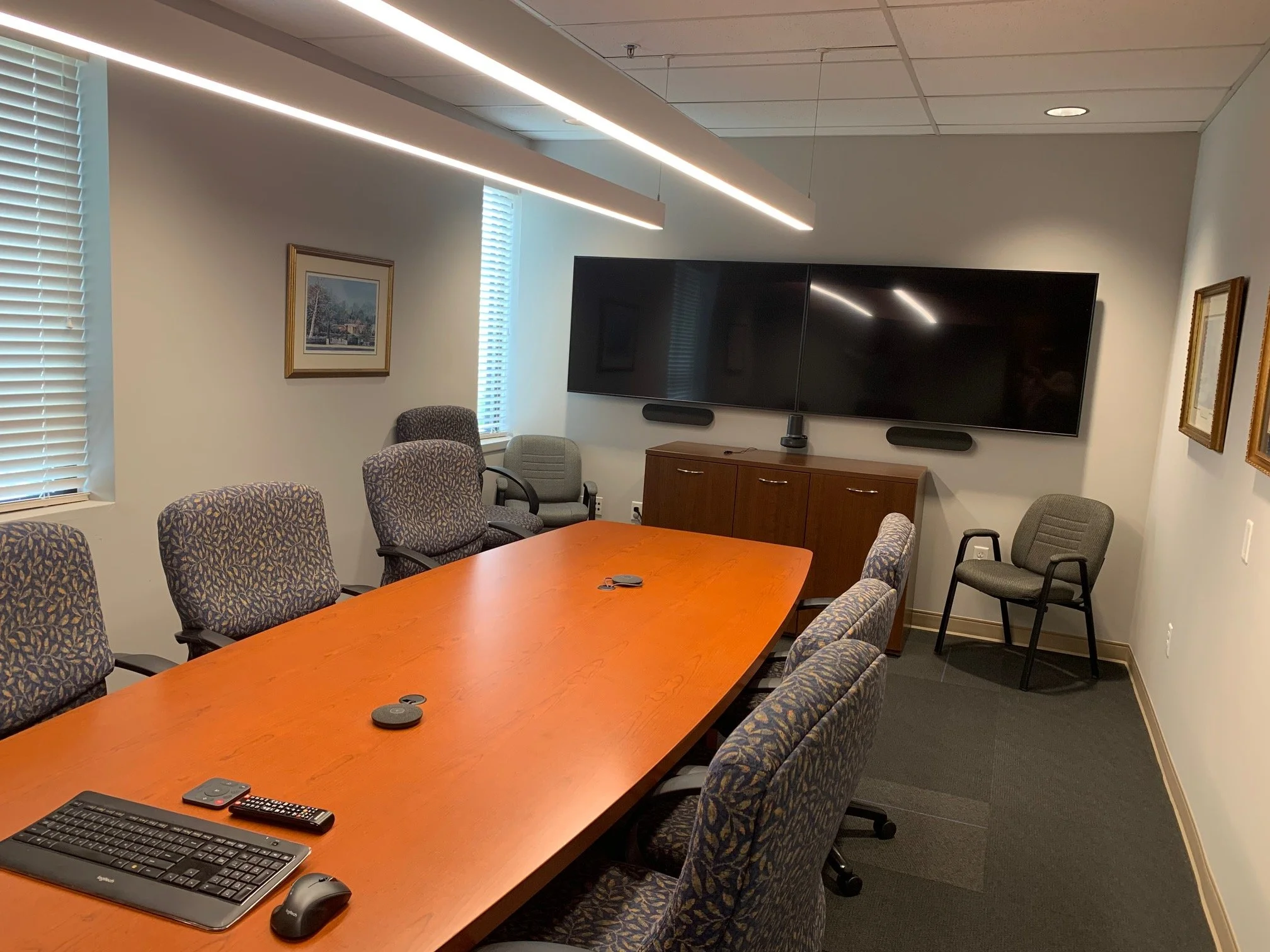 Large meeting spaces designed for large screen projection designed for 12-20 participants.